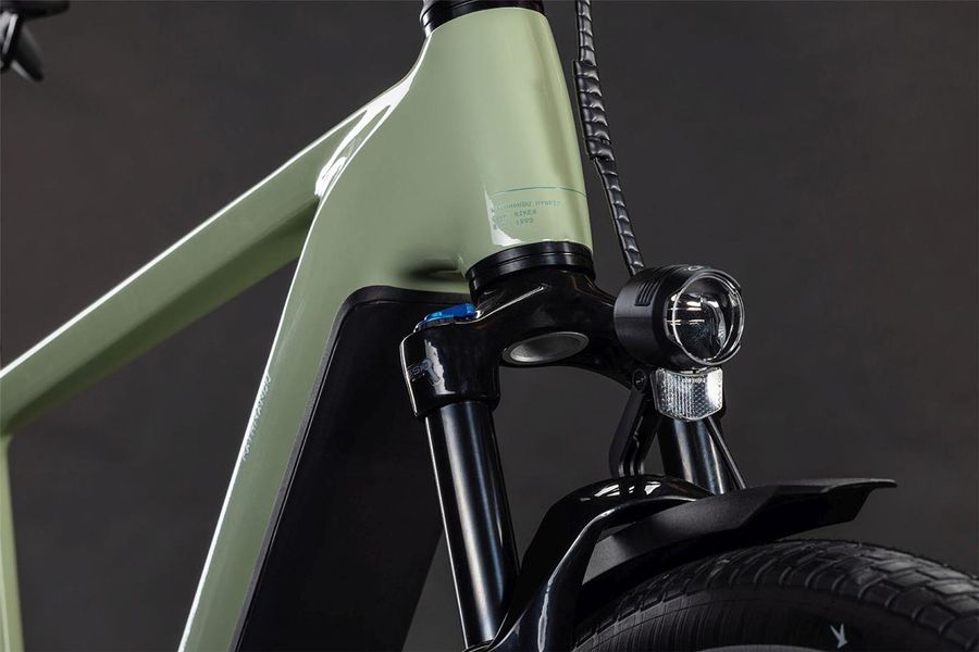 Der Rahmen des CUBE Kathmandu Hybrid sieht auf den ersten Blick vielleicht unspektakulär aus – auf den zweiten erschließen sich jedoch seine Eleganz und Klasse, außerdem die vielen Innovationen und cleveren Details. Dabei ist der samt 800 Wh PowerTube Akku ästhetisch und sauber ins Design integrierte CX Motor von Bosch nur eins der Highlights. Ein weiteres ist die Efficient Comfort Geometry, die harmonisch mit der 100 mm Federgabel Hand in Hand arbeitet, was die Kontrolle vor allem bei schwierigen Bedingungen optimiert. Dazu die interne Zugverlegung, die den cleanen Look des Chassis unterstreicht. Was noch? Ein vielseitiges, beinahe unzerstörbares UDH für einfache Ersatzteilverfügbarkeit, ein integrierter Kettenschutz und der stabiler, robuster, überaus formschöner integrierter Gepäckträger IC 3.0, auf dem alles Platz findet, was auf Abenteuertour mit muss.
