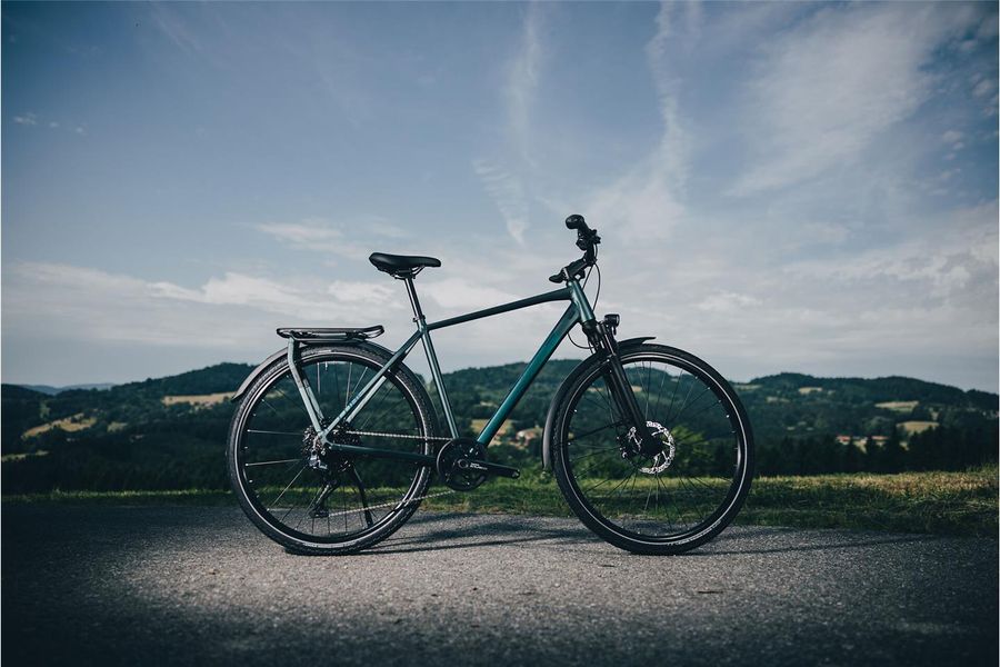 CUBE ist unter anderem für die extreme Liebe zum Detail bekannt. Deshalb hat CUBE das Kathmandu auch mit dem integrierten Gepäckträger IC 3.0 ausgestattet, der nahtlos und formschön in die ACID Schutzbleche übergeht. Dazu gibt's am Hinterrad Aufnahmen für eine Flat Mount Scheibenbremse und einen Seitenständer. Seine cleane, aufgeräumte Optik verdankt das Chassis den im Smooth Welding Verfahren gestalteten Rohrverbindungen und im Inneren verlaufenden Zügen. So viel zum Aussehen. In Sachen Funktion hat CUBE den Hinterbau mit einer Steckachse versehen und ein konisches Steuerrohr für optimierte Stabilität und Lenkpräzision (selbst bei voller Beladung) verbaut. Also alles da, was es auf Tour braucht – den Rest machst du!