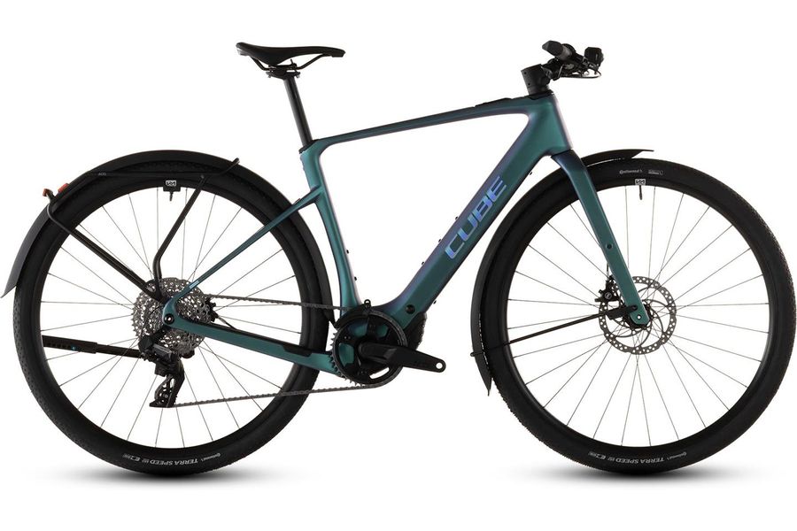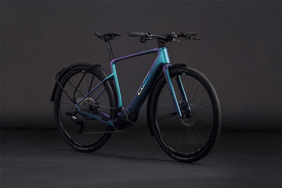 Der Carbonrahmen des Nulane Hybrid C:62 orientiert sich stark an dem der schnellen, leichten und robusten Gravel-Bikes und seine elegante Linienführung und cleane Optik lassen auf höchste Qualität schließen. Dank genügend Reifenfreiheit können bis zu 50 mm breite Reifen montiert werden, sogar mit Schutzblechen. Dazu hat CUBE einen Seitenständer und einen stabilen Gepäckträger am Heck integriert, was sich vor allem auf dem täglichen Weg ins Office und bei längeren Touren am Wochenende bezahlt macht. Außerdem Montagepunkte an der Gabel zum Anbringen eines weiteren Gepäckträgers. Sehen und gesehen werden – nichts leichter als das mit dem X-Connect System für ein ACID Vorderlicht. Das Cockpit für den Bosch Antrieb fügt sich formschön ins Oberrohr ein, dazu gibt's eine praktische Mini Remote am Lenker. Wer noch mehr Reichweite will und braucht, rüstet den Rahmen mit einem zusätzlichen 250 Wh PowerMore Akku auf. Was noch? Eine versteckte Sattelklemme, eine Direct Mount Kettenführung, Aufnahmen für einen Flat Mount Seitenständer, ein Boost Hinterbau und die Möglichkeit zur Integration eines UDH. Fazit: Dieser effiziente Alleskönner hat immer und überall die Nase vorn!