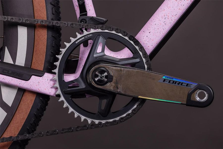 Das Nuroad C:62 SLX begeistert Gravel-Fans nicht nur mit seinem überaus detailverliebt konstruierten CUBE C:62® Carbonrahmen samt passender Gabel, sondern auch mit seinen Gravel-spezifischen Zipp 303 XPLR S Laufrädern mit hohen Felgen für den entscheidenden Vorteil in Sachen Aerodynamik und Speed beim Rennen. Auch die 45 mm G-One RX Pro Reifen von Schwalbe rollen pfeilschnell dahin – gebremst wird mit den hydraulischen Force AXS Scheibenbremsen von Sram. Ebenso aus dem Hause Sram stammt die robuste 12-fach GX Eagle Transmission, die absolut zuverlässig und sauber von Gang zu Gang schaltet. Übrigens: Am Sram Force Kurbelsatz ist ein Powermeter integriert – für den perfekten Überblick über die eigene Performance. Also nichts wie los, das Gravel-Abenteuer wartet schon!