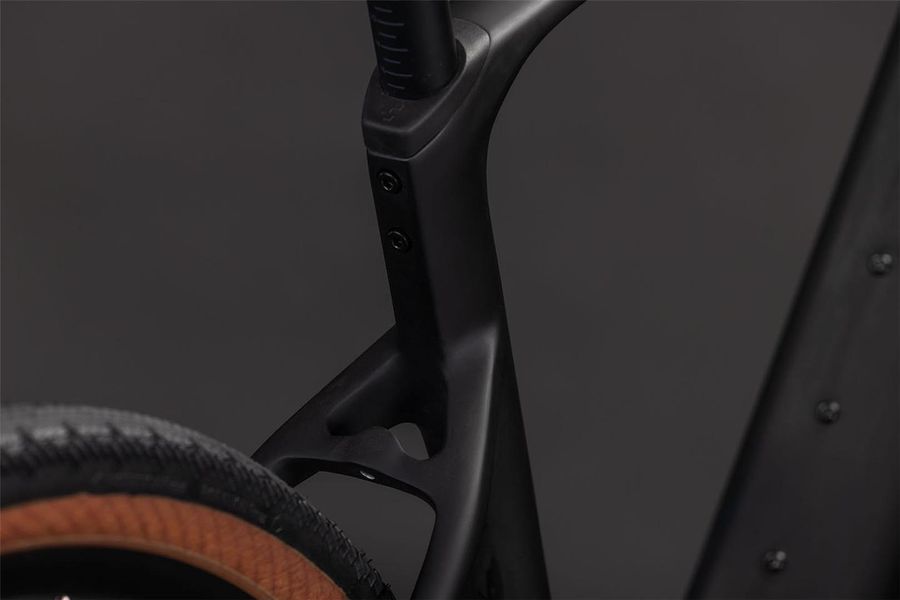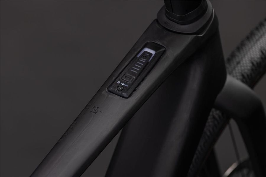 Form und Funktion in Vollendung: Mit seiner reduzierten Linienführung ist der superelegante Nuroad Hybrid C:62 Carbonrahmen nicht nur ein optisch ein Hochgenuss, sondern auch in Sachen Handling. Einerseits, weil CUBE genügend Platz für die Montage von 50 mm breiten Reifen gelassen hat, sogar mit Schutzblechen. Andererseits gibt's am Heck und an der Vollcarbongabel Aufnahmepunkte für Gepäckträger für den erstklassigen Support bei sämtlichen Bikepacking-Abenteuern. Das Cockpit für den Bosch Antrieb fügt sich formschön ins Oberrohr ein und kann per Mini Remote vom Lenker aus bedient werden. Außerdem ist das Chassis PowerMore-ready, das heißt, es lässt sich mit weiteren 250 Wh Reichweite ausrüsten. Was noch? Eine sauber integrierte Sattelklemme, eine leichte Direct Mount Kettenführung, Aufnahmen für einen Flat Mount Seitenständer, ein Boost Hinterbau und ein UDH.