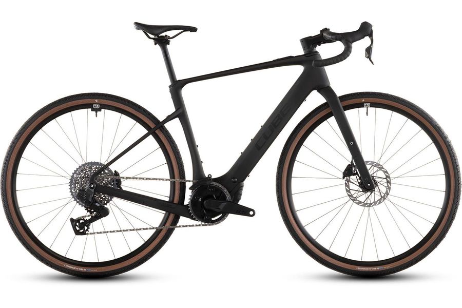 Mit dem Nuroad Hybrid C:62 EXC stellt CUBE ein Bike vor, das die Eleganz eines Straßenrennrads und die Robustheit einer Gravel-Maschine auf einen Nenner bringt. Mit an Bord ist die superbreit gefächerte und höchst präzise arbeitende Rival XPLR AXS 13-fach von Sram, die für jede Situation unterwegs den richtigen Gang bereitstellt. Außerdem ein leichter SX Motor von Bosch mit 400 Wh starkem Akku und bis zu 60 Nm Drehmoment. Seinen elegant konstruierten C:62® Carbonrahmen und die Carbongabel hat CUBE mit Befestigungspunkten für Schutzbleche und Gepäckträger versehen – und sogar ein X-Connect Kabel für den supereinfachen Anschluss eines kompatiblen ACID Vorderlichts integriert. Dank viel Reifenfreiheit können 45 mm breite G-One RS Pro Reifen auf Newmen Performance Gravel 25 Laufrädern mitfahren. Weil viel Vortrieb auch top kontrolliert werden will, packen progressive hydraulische Sram Rival AXS Scheibenbremsen bei jedem Wetter und auf jedem Untergrund kräftig zu. Fazit: ein Bike für das ganz große Abenteuer!