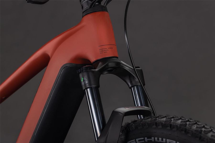 Mit seiner robusten Konstruktion und dem 800 Wh starken Akku meistert das Reaction Hybrid Race alle Routen souverän. Zudem ist dieses E-Hardtail PowerMore-ready, das heißt, es können bei Bedarf weitere 250 Wh für noch mehr Reichweite mitfahren. Sein Bosch CX Motor mit Smart System ist für tatkräftige Unterstützung im Vorwärts zuständig, dabei hat die 12-fach Sram Transmission 90 für jede Situation unterwegs den richtigen Gang parat. Für höchsten Fahrkomfort und 1a-Kontrolle hat CUBE 2.6 Zoll breite, griffige Schwalbe Pneus und eine Rockshox Recon Silver Luftfedergabel verbaut. Apropos Kontrolle: Die hydraulischen 4-Kolben-Scheibenbremsen packen bei Bedarf kräftig zu und verzögern das Bike bei allen Bedingungen zuverlässig und sicher – und eine versenkbare Sattelstütze ist auch mit dabei. Gern abseits markierter Wege unterwegs? Dann nichts wie los!