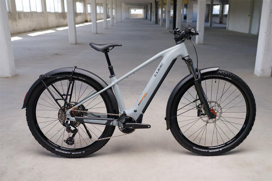 Das Reaction Hybrid Race FE steckt voller praktischer Details. Zum einen ist es standardmäßig mit Schutzblechen, einem robusten Gepäckträger, einem sauber ins Design integrierten Beleuchtungssystem und einem stabilen Seitenständer versehen. Außerdem mit einer versenkbaren Sattelstütze für optimiertes Handling auf steilen Trails. Zum anderen macht die breit gefächerte 12-fach Transmission 90 von Sram selbst anspruchsvolle Routen zum Kinderspiel. Für höchsten Fahrkomfort und 1a-Kontrolle hat CUBE 2.6 Zoll breite, griffige Schwalbe Pneus und eine einfach einstellbare Rockshox Recon Silver Luftfedergabel mit 120 mm Federweg (100 mm bei den kleinsten Rahmengrößen und den Tiefeinsteiger-Modellen) verbaut. Apropos Kontrolle: Die hydraulischen Louise 4-Kolben-Scheibenbremsen von Magura verzögern das Bike selbst bei Nässe zuverlässig und sicher. CUBE hat sich also um alles gekümmert – jetzt heißt's aufsitzen und Spaß haben!