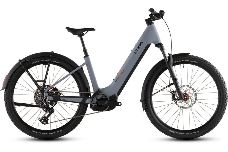 Das Reaction Hybrid Race FE steckt voller praktischer Details. Zum einen ist es standardmäßig mit Schutzblechen, einem robusten Gepäckträger, einem sauber ins Design integrierten Beleuchtungssystem und einem stabilen Seitenständer versehen. Außerdem mit einer versenkbaren Sattelstütze für optimiertes Handling auf steilen Trails. Zum anderen macht die breit gefächerte 12-fach Transmission 90 von Sram selbst anspruchsvolle Routen zum Kinderspiel. Für höchsten Fahrkomfort und 1a-Kontrolle hat CUBE 2.6 Zoll breite, griffige Schwalbe Pneus und eine einfach einstellbare Rockshox Recon Silver Luftfedergabel mit 120 mm Federweg (100 mm bei den kleinsten Rahmengrößen und den Tiefeinsteiger-Modellen) verbaut. Apropos Kontrolle: Die hydraulischen Louise 4-Kolben-Scheibenbremsen von Magura verzögern das Bike selbst bei Nässe zuverlässig und sicher. CUBE hat sich also um alles gekümmert – jetzt heißt's aufsitzen und Spaß haben!