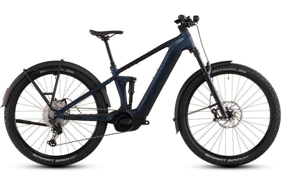 Der Schweizer Taschenmesser unter den Mountainbikes heißt Stereo Hybrid ONE22 FE und hat einen semi-integrierten Gepäckträger, Schutzbleche, ein Beleuchtungssystem und einen stabilen Seitenständer mit an Bord. Aber das ist noch lang nicht alles. Sein Bosch CX Antrieb wird von einem hochkapazitiven 800 Wh Akku effizient vorangetrieben. Die Comfort Geometry und das bewährte Viergelenker-Design sorgen in harmonischer Zusammenarbeit für konstant hohen Fahrkomfort sowie 1a-Bodenhaftung – ein geschätzter Vorteil vor allem auf langen Strecken. Im Rahmeninneren verlaufende Züge spielen der eleganten Optik in die Karten. On top har CUBE eine Direct Mount Kettenführung und ein UDH Schaltauge verbaut – allesamt geniale Features, die das Leben auf den Trails dieser Welt um so vieles leichter machen. Clever: Dank dem Size Split System finden alle das perfekt proportionierte Bike für sich und ihre Anforderungen.