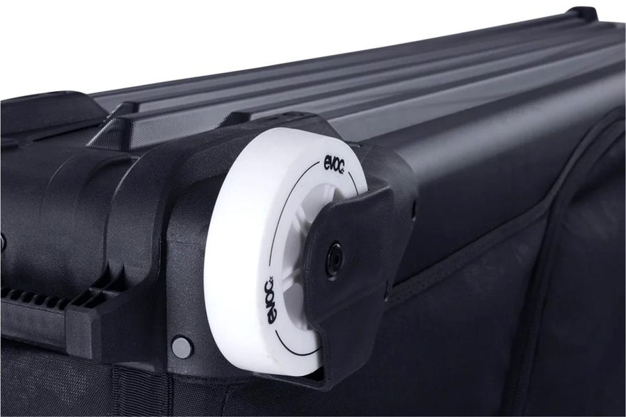 Die völlig neue Evoc Mountain Bike Bag Pro transportiert dein Mountainbike dank optimierter Geometrie nun noch einfacher, ohne das zeitraubende Abbauen von Lenker oder Cockpit. Das einfache Drehen des Lenkers durch Öffnen des Vorbaus um 90 Grad genügt und schon ist dein Bike nach Demontage von Laufrädern und Pedalen auf dem flexibel verstellbaren Bike Stand Pro transportbereit: für Bikes mit integriertem Cockpit und innenverlegten Zügen ein großer Vorteil. Der leichteste Fahrradkoffer am Markt ist dank des neuartigen Polycarbonat-Bodens nun noch robuster und bietet deinem Bike – bis zu einem Radstand von 130 cm – beim Transport am Flughafen oder im Zug zuverlässigen Schutz. Austauschbare überarbeitete Skate-Rollen sorgen dafür, dass die Mountain Bike Bag Pro smooth und geräuscharm durch Flughäfen oder Bahnhöfe gleitet. Außerdem haben wir dem Clip-on Wheel ein Update spendiert, und es zwecks einer verbesserten Traglastverteilung mittiger unter der Bag platziert. Wenn du den Fahrradkoffer nicht benötigst, kannst du die seitlichen Stabiliser entnehmen, ihn zusammenfalten und platzsparend verstauen.