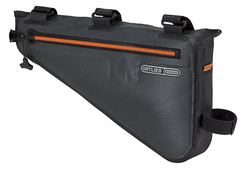 Sie wird im Rahmendreieck verspannt und ist daher ideal für schweres Equipment. Denn für ein stabiles Fahrverhalten ist es wichtig, dass der Schwerpunkt des Bikes möglichst tief liegt. Das Ortlieb Frame-Pack ist in zwei verschiedenen Größen erhältlich. Aufgrund der Vielfalt an Rahmenkonstruktionen auf dem Markt kann es in Einzelfällen allerdings sein, dass sich keine Rahmentasche befestigen lässt. Dies dürfte vor allem Fullys mit speziellen Dämpferpositionen betreffen. Auch die Montage von Flaschenhaltern ist in der Regel nicht mehr möglich. Beim Packen sollte man darauf achten, dass sich die Seiten nicht zu stark ausbeulen (Berührung Beine/Knie).