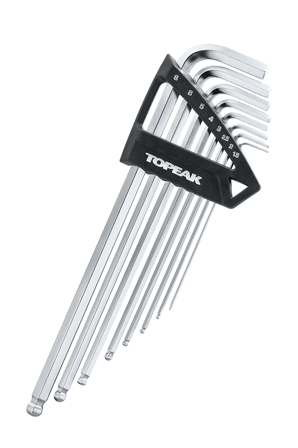 Wir empfehlen ein hochqualitatives Inbusschlüssel-Set von 1,5 mm bis 8 mm. Damit sollten die kleinsten Einstellschrauben bis hin zum großen Pedal-Innensechskant abgedeckt sein.