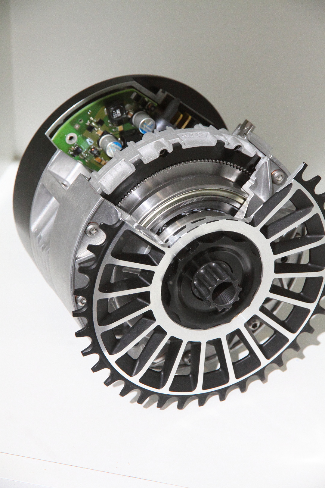 Herzstück der neuen Haibike FlyOn Modelle ist der kreisrunde Motor, den Haibike zusammen mit dem deutschen Hersteller TQ-Systems entwickelt hat. Das Aggregat mit der Optik eines edlen Uhrwerks aus Aluminium bringt 120 Newtonmeter Drehmoment aufs Hinterrad. Zum Vergleich: Der bewährte Bosch Performance CX Antrieb schafft 75 Nm – und ist damit auch nicht gerade ein Schwächling!
