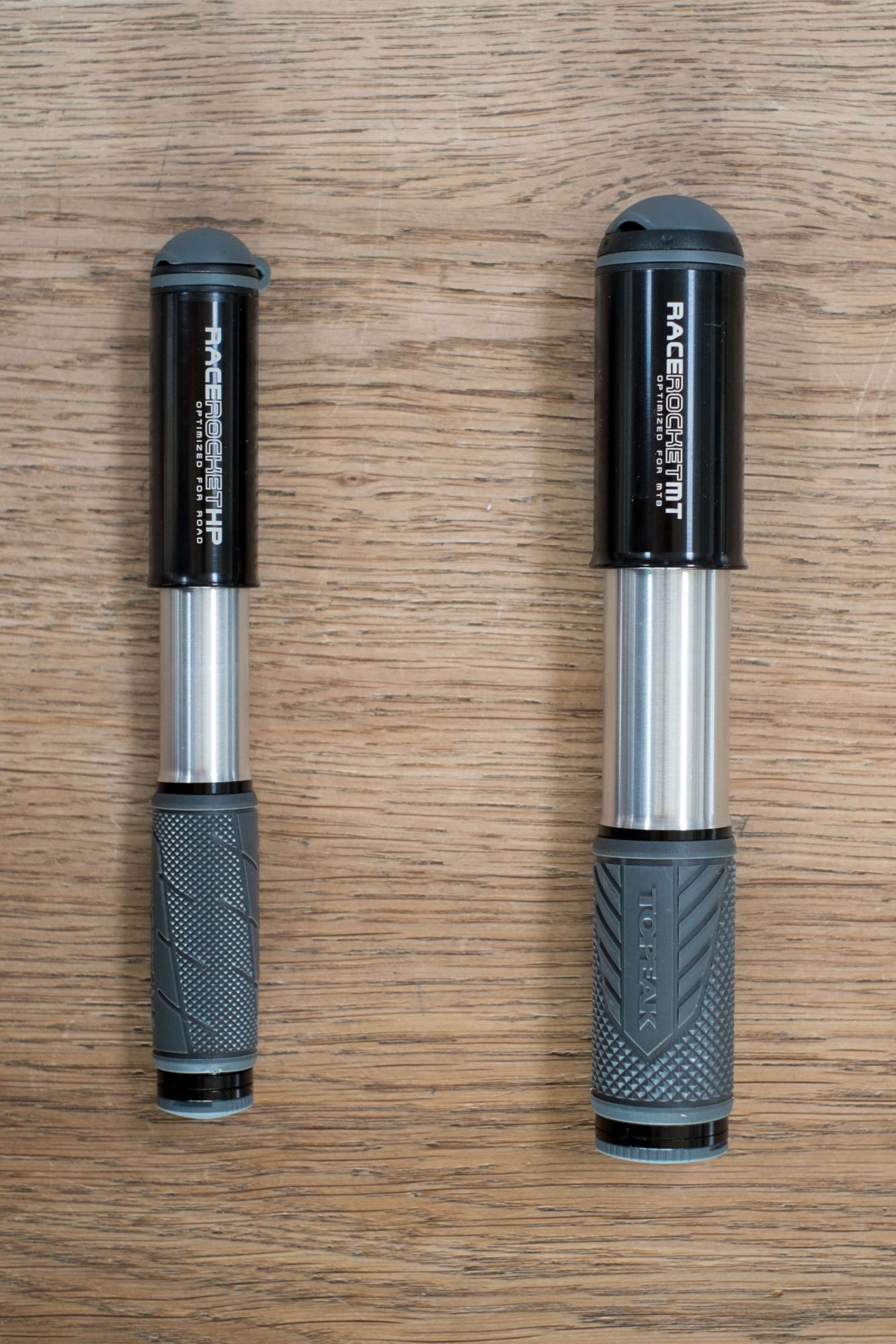 Großes Volumen für schnelles Aufpumpen der dicken MTB Reifen, kleines Volumen und hohes Übersetzungsverhältnis für den hohen Luftdruck in Rennrad Reifen.