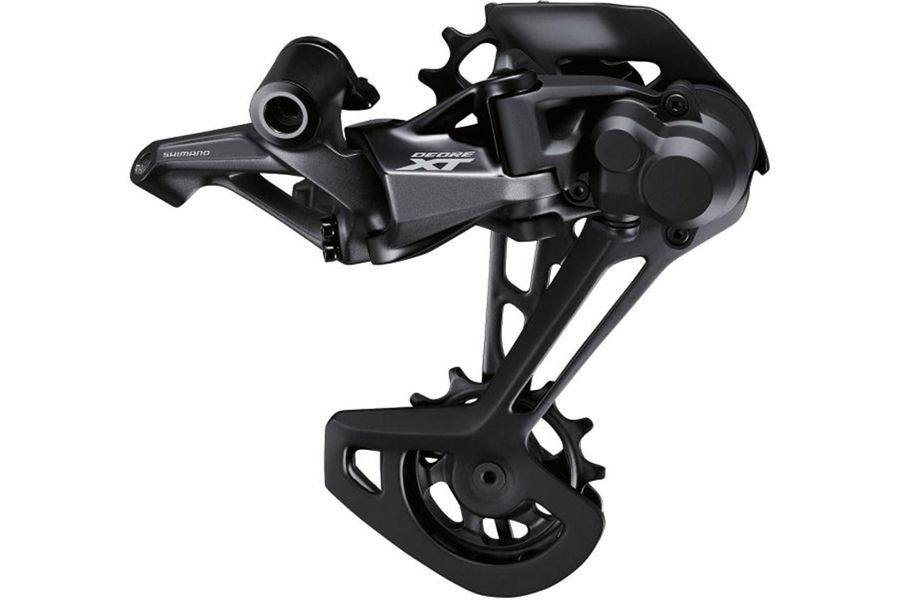 Die SHIMANO DEORE XT M8100 Schaltwerkserie sorgt durch weniger Spannung in den niedrigen Gängen und einen zusätzlichen Anschlag am Käfig für ein neues Level an Geräuscharmut. Die größeren 13Z-Umlenkrollen sorgen für mehr Effizienz und besseres Kettenmanagement, während die Kompatibilität mit SHIMANOs neuer 12-fach-Kassette die Bandbreite deutlich erhöht.