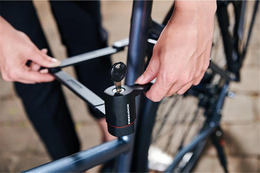 Das neue FS 480 COPS® in neuer TRELOCK-Optik ist der kompakte Neuzugang in der beliebten COPS-Faltschloss-Serie. Die gummierten Schließstäbe aus gehärtetem Stahl lassen sich bis zu 1,00 m Länge entfalten. Das Anschließen an einen festen Gegenstand gelingt noch einfacher. Für das einfache Abschließen ist das FS 480 COPS® mit einem um 360 Grad drehbaren Schließbereich am Schlosskopf und einem Wendeschlüssel ausgestattet. Der IN-X®-Zylinder wird durch eine Schutzkappe vor Staub und Schmutz geschützt. Die 100-cm-Version wird mit der neuen X-PRESS-Halterung geliefert. Der neue Verriegelungsmechanismus der X-PRESS-Halterung macht das Entfernen und Einsetzen des Schlosses noch einfacher. Um das Schloss zu entnehmen, drücken Sie den roten Knopf und das Schloss wird freigegeben. Um das Schloss wieder in der Halterung zu befestigen, drücken Sie die Bügel einfach zusammen. Diese Variante des FS 480 verfügt über eine Aufnahme für Smart- oder Airtags.