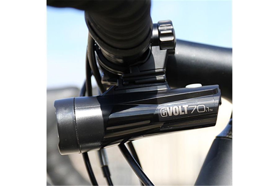 The compact GVolt 70.1 is a USB rechargeable front light with an impressive 70 lux and clever illumination achieved by combining four different optics in just one small lens. The 70 lux is emitted by a single LED. This light includes three settings: High, Medium and Low. With 4 hours of runtime on the highest setting, the GVolt 70.1 takes you from the road to the trail.