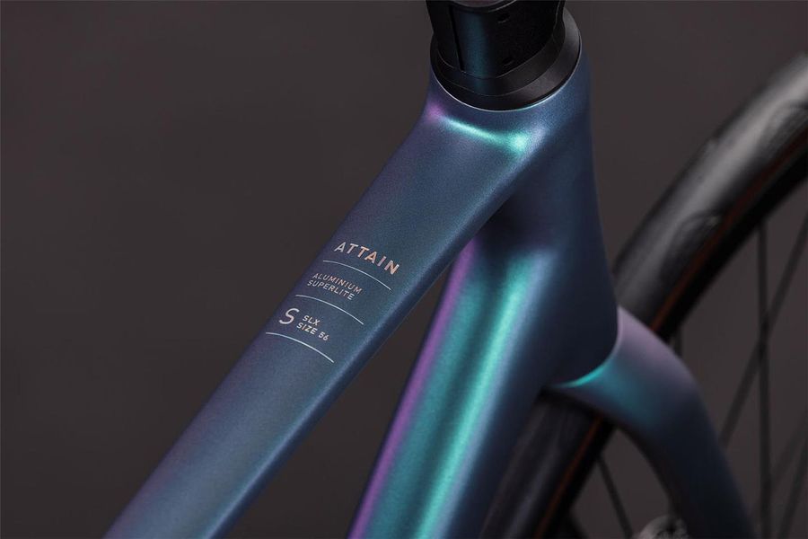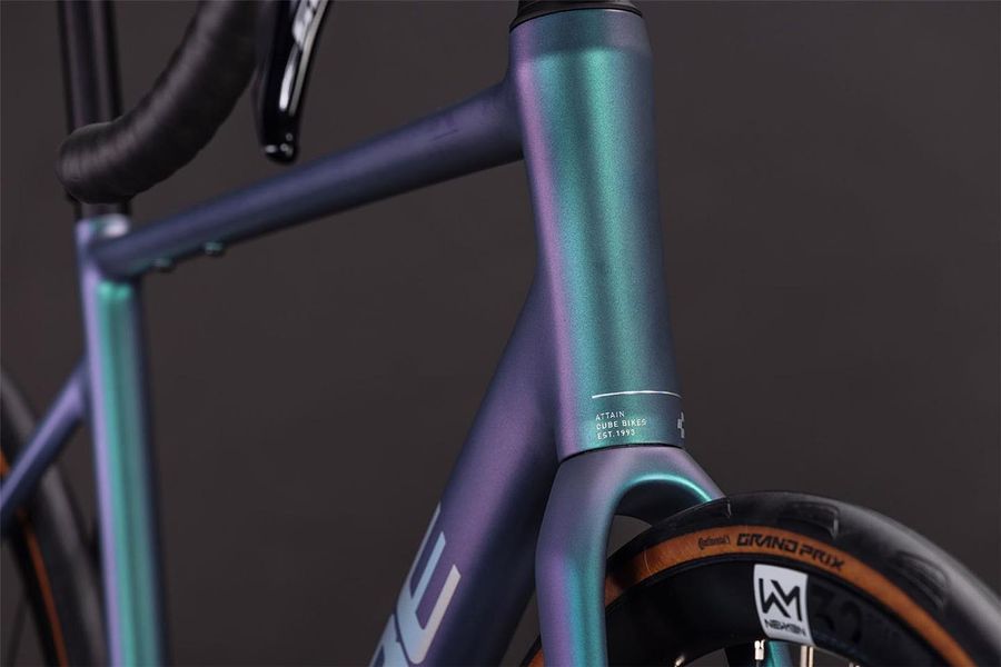 CUBE built the Attain's 6061 semi-aero aluminium chassis with both comfort and performance in mind. A teardrop profile down tube helps the frame slice through the air and integrated cable routing reduces clutter, while Smooth Welding gives tube joints a premium, almost organic appearance. The tapered steerer and thru axles front and rear ensure pinpoint precision accuracy and efficient power transfer. Slender seatstays and a full carbon fork help reduce road shock and vibration for significantly improved rider comfort, and there's room for tyres up to 32mm. And, with a neatly integrated seatpost clamp and mounting points under the top tube, we like to think we've thought of everything... so you can just ride.