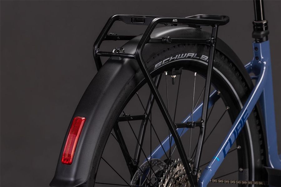 The Nuride Hybrid's Easy Entry frame does exactly what you'd expect it to do, making riding a simple pleasure with no acrobatics required. Designed to accommodate a 100mm suspension fork for extra comfort and control, it also features generous tyre clearances – even with the supplied mudguards. Integrated cables complement the frame's clean looks and the 800Wh PowerTube battery and Bosch CX drive are neatly incorporated into the frame structure. There's an integrated chain guard and, with the included mudguards, lights and kickstand plus the sturdy Semi Integrated Carrier 2.0, you've everything you need for two-wheeled adventures.