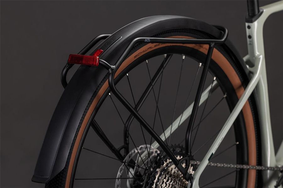 There's more to making a really practical frame than bolting on mudguards and a carrier, although CUBE has done that too. The Nuroad Hybrid C:62 FE's elegantly sculpted C:62® frame is full of neat touches, like the ability to run up to 50mm tyres even with the included mudguards. The full carbon fork has carrier mounts, CUBE added a Direct Mount lightweight chain guide, there's a flat mount kickstand interface, and the rear end is equipped with Boost axle and UDH gear hanger. As for the Bosch drive system, it's PowerMore-ready for a +250Wh battery booster pack and the control unit is neatly incorporated inside the top tube, with a separate Mini Remote on the handlebar.
