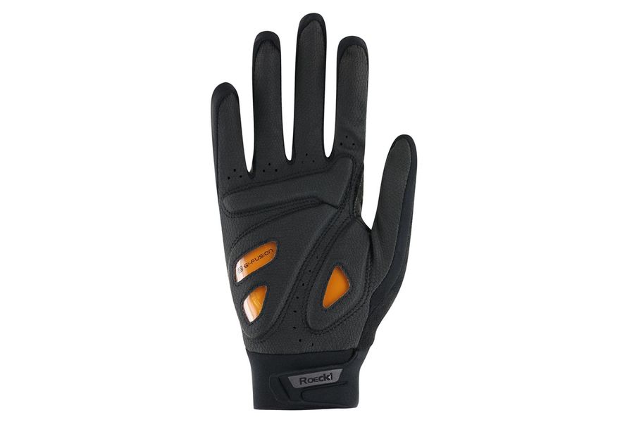 The seamless Comfort-Innovation padding supports the crook of the thumb and provides additional comfort. The backhand is made from Micro Mesh Eco, an elastic and breathable material made from recycled polyamide and elastane. The palm with ROECK-GRIP® offers a reliable grip and enables precise handlebar control. The glove is also touchscreen compatible, which makes it easier to operate smartphones.