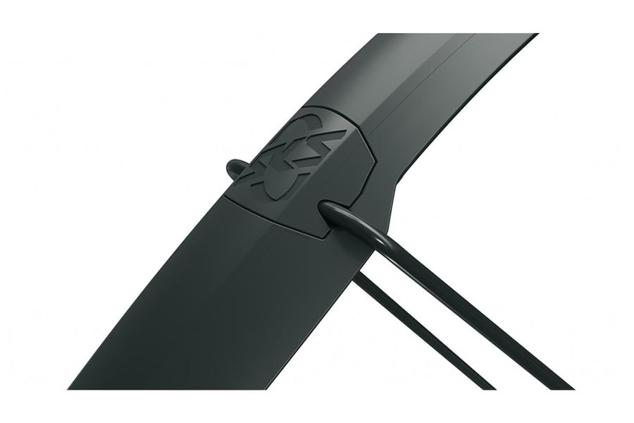 The mounting system with flexible flaps can be attached to the frame for any geometry. Integrated underrun braces with ESC Vario safety system not only ensure a clean look, but also more clearance between the mudguard and tyre.