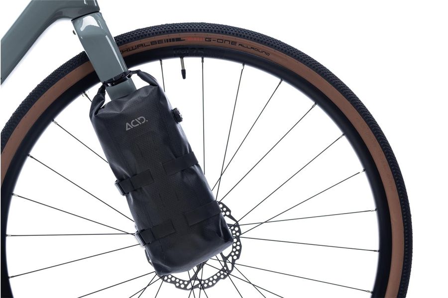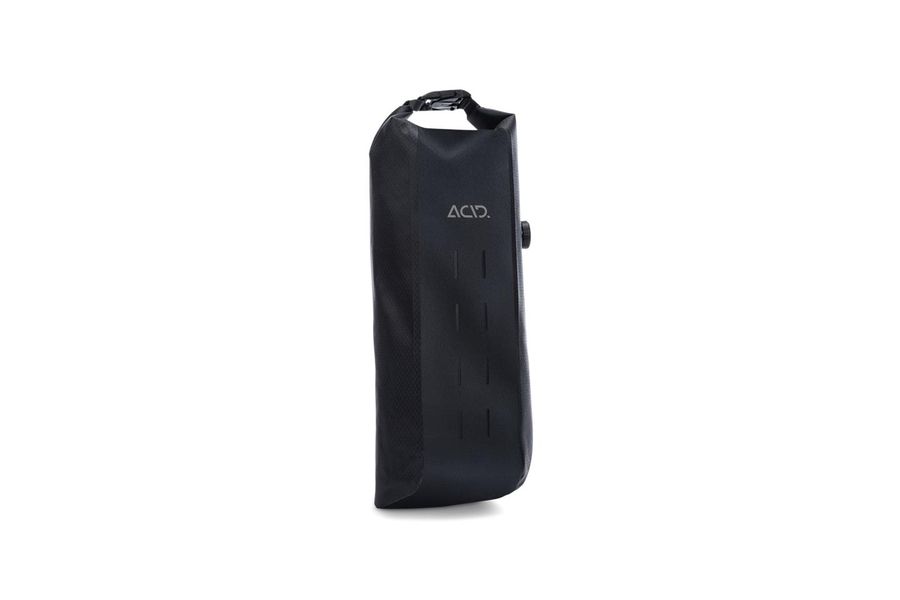 Die ACID Packtasche PACK PRO 3 mit drei Litern Fassungsvermögen wurde für den ACID Fork Cage Frontgepäckträger entwickelt. Die verschweißte Konstruktion macht sie wasserdicht und das abriebfeste Außenmaterial besonders langlebig. Das MOLLE-System ermöglicht eine flexible Befestigung mit den beiliegenden Klettbandstraps am ACID Fork Cage oder auch an anderen Taschen. Die Kontaktstellen zum ACID Fork Cage wurden zusätzlich verstärkt. Sie verfügt über ein Ventil zum weiteren Komprimieren des Inhaltes. Reflektierende Elemente erhöhen die Sichtbarkeit bei Nacht.
