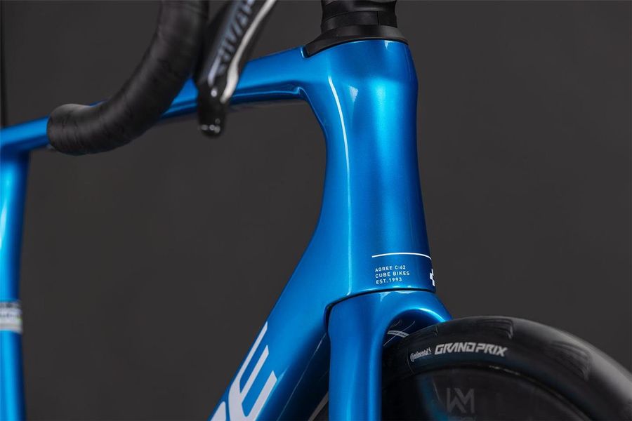 Der schlanke C:62® Carbonrahmen und die ebenso schlanke C:62® Carbongabel des Agree C:62 EX begeistern nicht nur mit ihrer überaus eleganten Optik, sondern auch mit ihrer unglaublichen Aerodynamik. Doch es kommt noch besser: Pfeilschnell dahinrollende 30 mm Continental Grand Prix Reifen auf Newmen Advanced A.50 Laufrädern bringen den Vorwärtsdrang effizient auf die Straße. Um die optimale Übersetzung kümmert sich bei dabei der elektronische Rival AXS Antrieb von Sram mit seinen 2x12 Gängen in direkter Reichweite am Lenker. Spät, aber dann effektiv und kontrolliert gebremst wird mit den passenden hydraulischen Sram Rival AXS Scheibenbremsen.