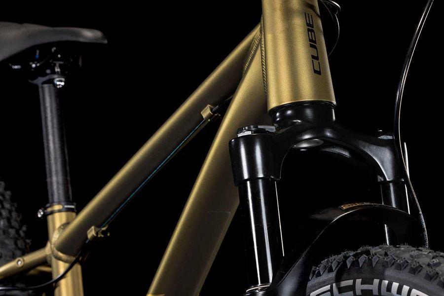 Der Reaction 240 TM Rahmen besteht aus denselben hitzebehandelten 6061er-Aluminiumrohrsätzen wie die Performance-Bikes für Erwachsene – CUBE hat die Form für das optimale Verhältnis von Steifigkeit zu Gewicht sogar mit demselben mechanischen Shaping-Verfahren angepasst und: genügend Reifenfreiheit integriert. Eine Federgabel, die speziell auf das kleinere Chassis und leichtere Rider abgestimmt wurde, setzt dem Ganzen die Krone auf. Zudem sorgen Aufnahmen für Scheibenbremsen und die clevere Positionierung der Kabelzüge für noch höhere Sicherheit und bessere Bremsleistung. Ein weiteres Highlight ist das austauschbare Schaltauge, dank dem nach einem kleinen Sturz nicht gleich der ganze Rahmen kostspielig repariert werden muss.