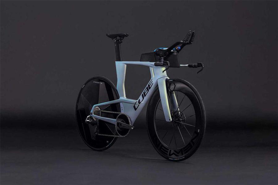 Der härteste Gegner im Kampf um Sekunden? Genau, der Luftwiderstand! Deshalb hat CUBE das siegreiche Triathlon-Bike noch mal unter die Lupe genommen und mit noch aerodynamischeren Komponenten bestückt. Das Ergebnis ist das Aerium C:68X SLT Aero, das durch die Luft schneidet wie ein heißes Messer durch Butter! Profile Design ASC Pro Extensions und das CUBE Cockpit ermöglichen eine individuelle, aber extrem windschnittige und damit supereffiziente Sitzposition. Der Newmen Streem TT80/Disc Vonoa Laufradsatz kommt mit einer Carbonscheibe hinten, die perfekt mit dem Hochprofil-Vorderrad harmoniert. Durch die Kombination mit den aerodynamischen Pro One Aero Pneus von Schwalbe wird jedes Watt effizient in Vortrieb umgewandelt. Diese Power übersetzt die Sram Red AXS 1x12-fach Schaltung mit einer gewachsten Ceramicspeed Red Kette samt passender Red Kurbel mit eingebautem Powermeter. Ebenso aerodynamisch wie kraftvoll: die Sram S-900 Aero Bremsen. Dieses Bike bedeutet Speed pur – damit ist der beste Bikesplit so gut wie gesetzt!