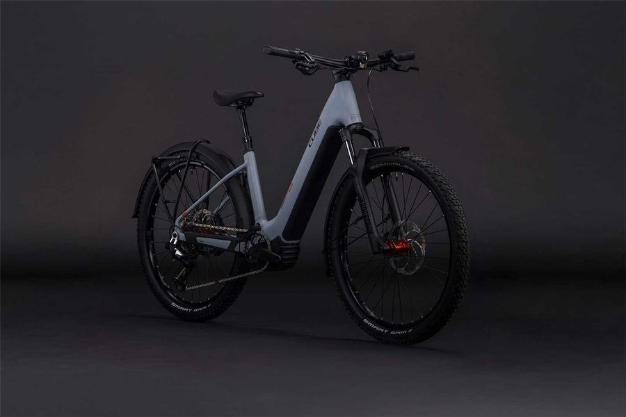 Das Reaction Hybrid Race FE steckt voller praktischer Details. Zum einen ist es standardmäßig mit Schutzblechen, einem robusten Gepäckträger, einem sauber ins Design integrierten Beleuchtungssystem und einem stabilen Seitenständer versehen. Außerdem mit einer versenkbaren Sattelstütze für optimiertes Handling auf steilen Trails. Zum anderen macht die breit gefächerte 12-fach Transmission 90 von Sram selbst anspruchsvolle Routen zum Kinderspiel. Für höchsten Fahrkomfort und 1a-Kontrolle hat CUBE 2.6 Zoll breite, griffige Schwalbe Pneus und eine einfach einstellbare Rockshox Recon Silver Luftfedergabel mit 120 mm Federweg (100 mm bei den kleinsten Rahmengrößen und den Tiefeinsteiger-Modellen) verbaut. Apropos Kontrolle: Die hydraulischen Louise 4-Kolben-Scheibenbremsen von Magura verzögern das Bike selbst bei Nässe zuverlässig und sicher. CUBE hat sich also um alles gekümmert – jetzt heißt's aufsitzen und Spaß haben!