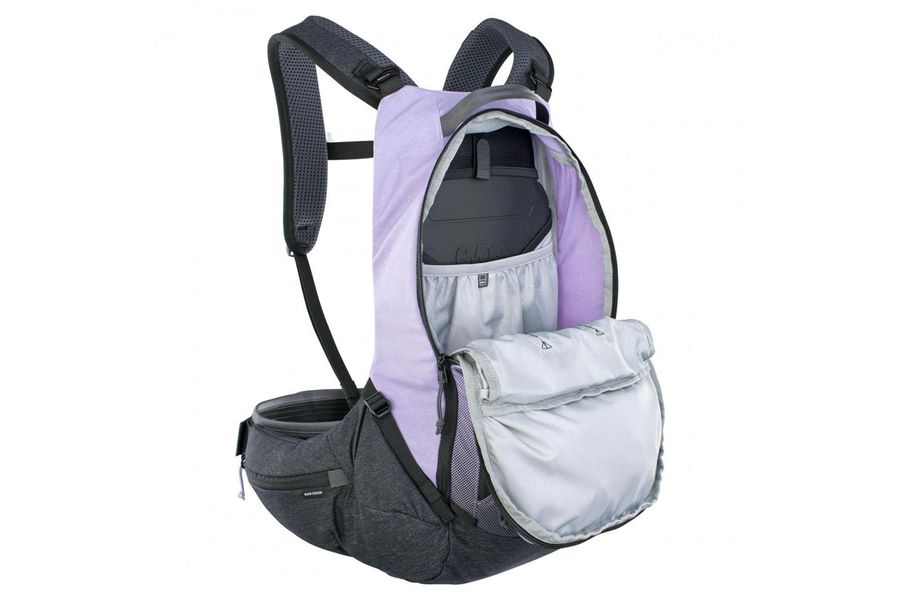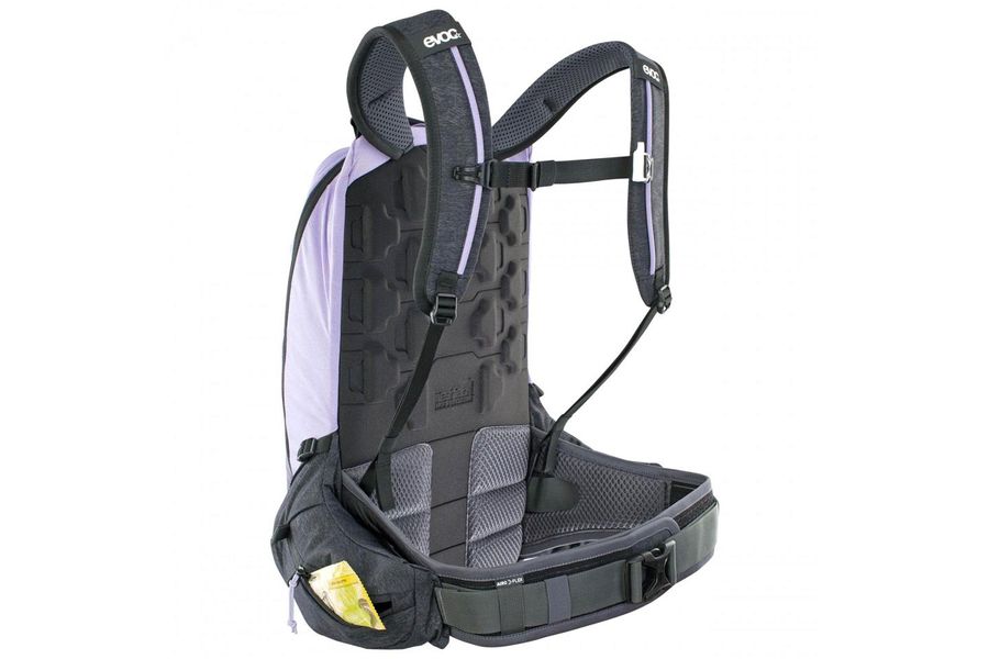 Die Hauptmerkmale der „Body Hugging“- Passform von EVOC sind die möglichst körpernahe Positionierung des Rucksacks, und die Verteilung des Gewichts über eine große Fläche auf die Hüften. Dank der optimierten Verbindung zwischen den Schulterträgern und den breiten Hüftflossen, die aus dem Rückenpanel „herauswachsen“, bleibt der Rucksack bei jeglicher Action verlässlich und so stabil wie möglich auf Position – für mehr Komfort und Kontrolle.