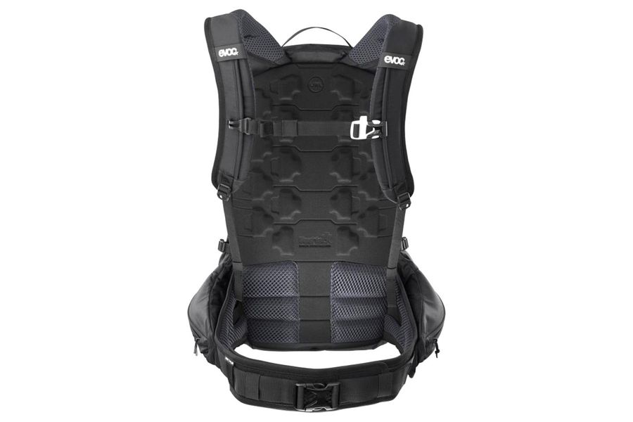 Die Hauptmerkmale der „Body Hugging“- Passform von EVOC sind die möglichst körpernahe Positionierung des Rucksacks, und die Verteilung des Gewichts über eine große Fläche auf die Hüften. Dank der optimierten Verbindung zwischen den Schulterträgern und den breiten Hüftflossen, die aus dem Rückenpanel „herauswachsen“, bleibt der Rucksack bei jeglicher Action verlässlich und so stabil wie möglich auf Position – für mehr Komfort und Kontrolle.