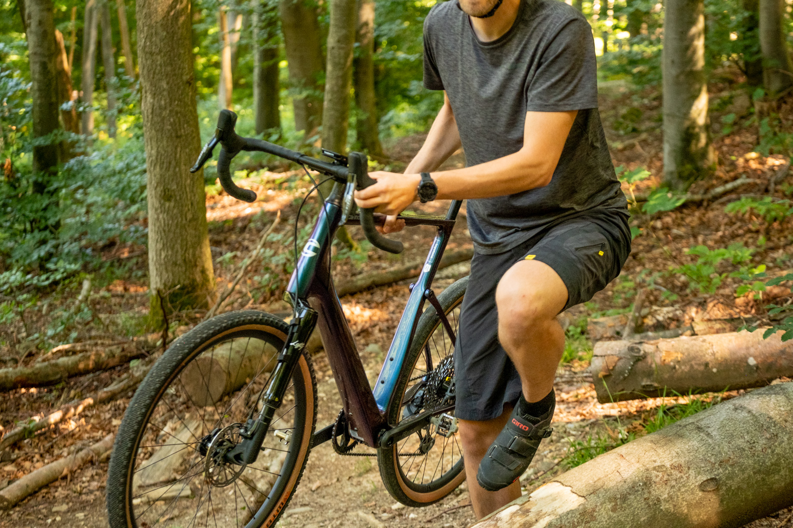 Schauen wir mal was das Fahrwerk so macht. Bordsteinkanten hoch, wieder runter und bewusst durch das ein oder andere kleinere oder größere Schlagloch. Ist ja witzig! Fühlt sich wirklich deutlich softer und flüssiger an als mit einem normalen Gravel Bike. Also ab in den Wald. Schotter, Feldwege und Wurzeln müssen her. Auch hier geht’s flüssig und mit ordentlich Vortrieb voran. Klar, man merkt ein gewisses Feedback vom Untergrund, aber dass das so entspannt und spaßig zu fahren ist, hätte ich nicht gedacht. Das Grinsen im Gesicht beginnt jetzt so wirklich! Weg da, jetzt komme ich bzw. dass Topstone mit mir an Board.