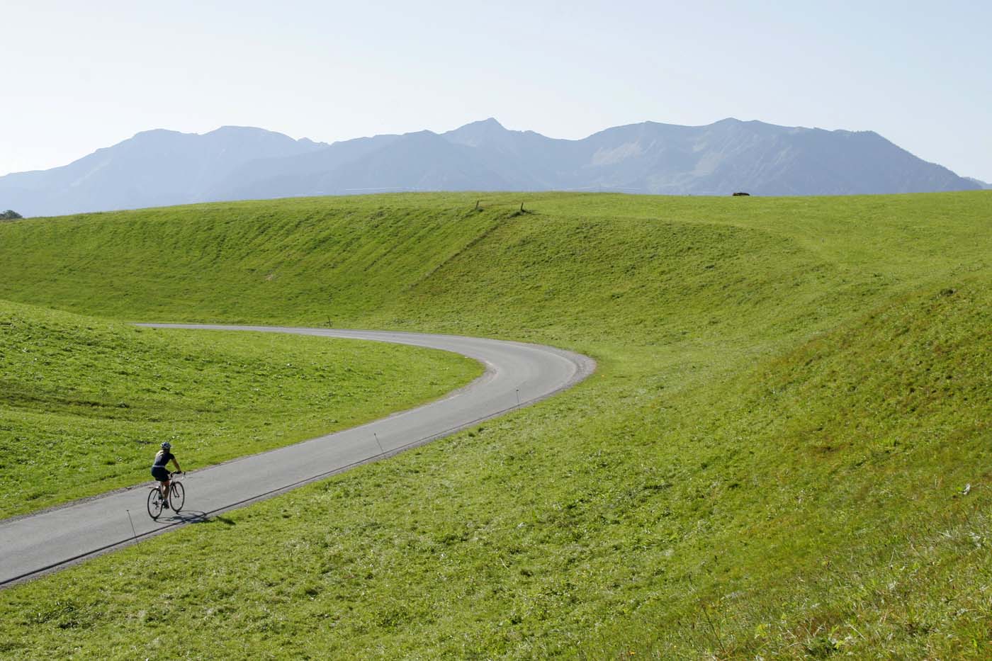 Raus aus der Stadt! Bei aller Lebensqualität, die eine Metropole wie München bietet, nutzt man als Rennradler dennoch gerne jede Gelegenheit, frische Luft in die Lungen zu pumpen. Im bayerischen Oberland erstreckt sich zwischen der Landeshauptstadt und den Alpen ein wahres Touren-Eldorado. Die Zungen der eiszeitlichen Gletscher hinterließen hier eine sanft gewellte Landschaft, überzogen mit einem eng gestrickten Netz an Nebenstraßen. Aber es geht noch einsamer: Viele der verschlafenen Dörfer und Gehöfte sind mit asphaltierten Wirtschaftswegen verbunden, wo praktisch kein öffentlicher Verkehr fließt. Nur begleitet vom Bimmeln der Kühe kurvt man auf diesen Sträßchen durch saftig-grünes Weideland und lauschige Wäldchen.