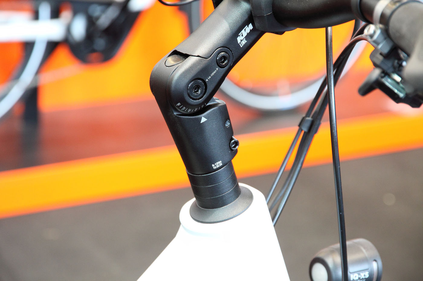 Der KTM Line Up Vorbau mit extra hohem Schaft ist im Winkel schnell verstellbar.