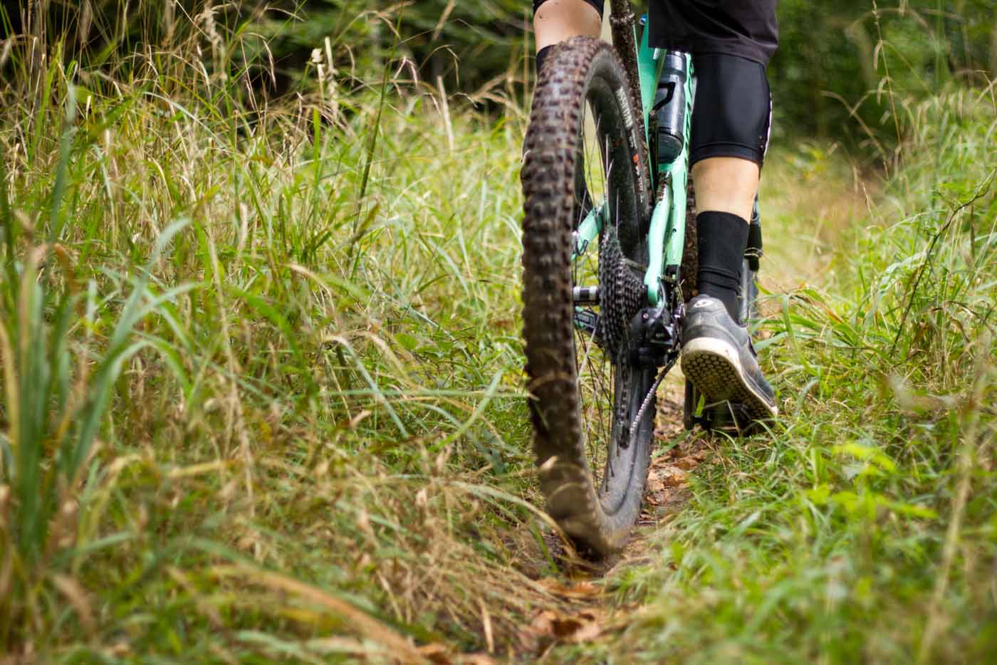 Wenn es bergab und auf den Trail geht, bieten die Klickies die Möglichkeit, das Rad mit den Füßen genauer zu führen. Egal ob kleine Sprünge, Bodenwellen oder über Wurzelsektionen – eingeklickt ist es möglich, kleine Linienanpassungen vorzunehmen und sauberer zu fahren. Der Fuß bleibt auch in extrem ruppigen Passagen sicher auf dem Pedal.