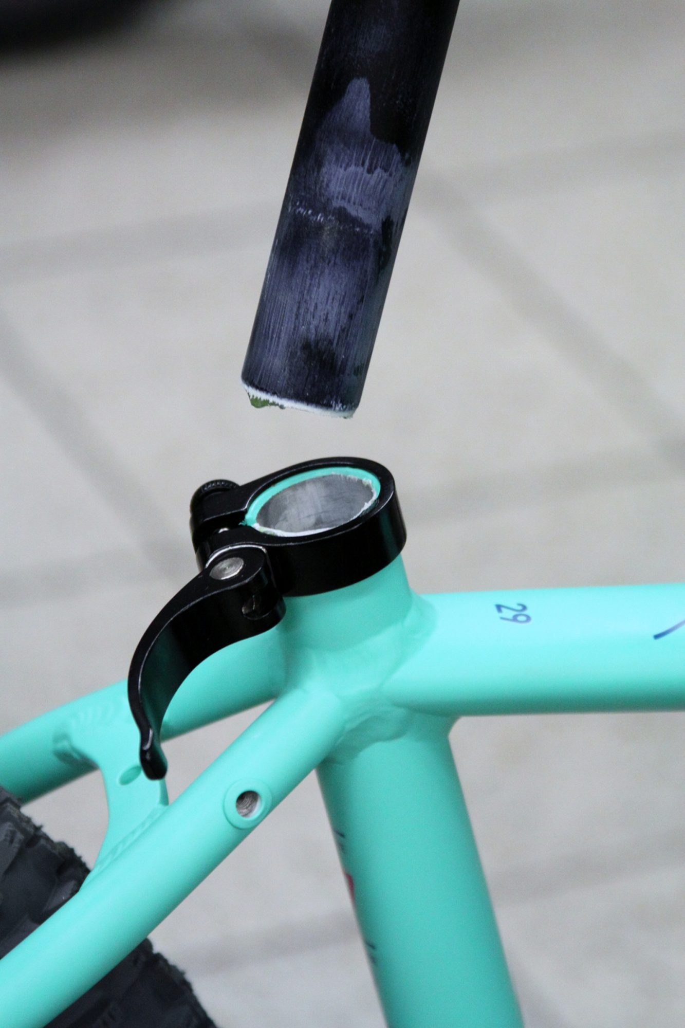 Bei dieser Gelegenheit die Sattelstütze einmal herausziehen, säubern (auch im Rahmenrohr) und vor dem Wiedereinbau leicht fetten. Ausnahme: Carbonstützen nicht fetten, sondern mit der entsprechenden Montagepaste versehen.