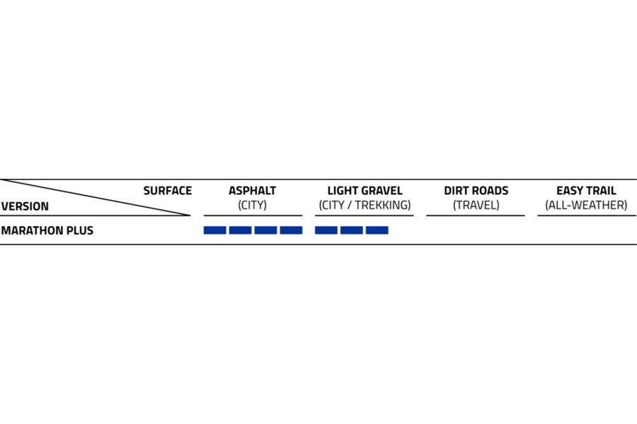 - E-Bike Ready: Der Marathon Plus ist durch seine hervorragenden Eigenschaften eine ideale Wahl für E-Bikes (E-25). Die wichtigsten Größen sind zudem für schnelle E-Bikes bis 50 km/h getestet und zugelassen (E-50)
