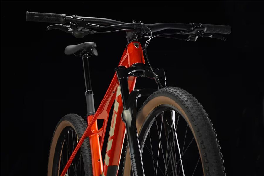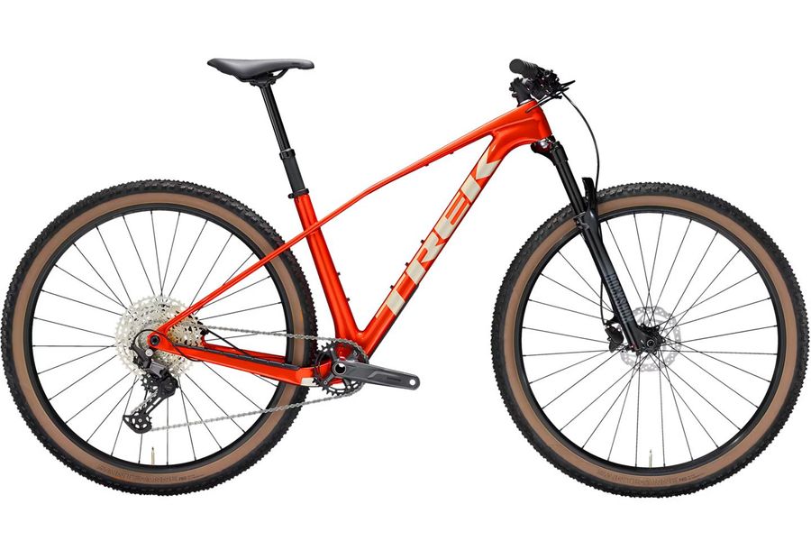 Das Trek Procaliber 9.5 Gen 3 Lava ist kein gewöhnliches Mountainbike – es ist dein geheimer Pfeil in der XC-Spitze. Der federleichte OCLV-Mountain-Carbon-Rahmen mit der innovativen IsoBow-Technologie absorbiert bequem die Vibrationen im Trail, ohne wertvollen Vortrieb zu verschenken. Die RockShox Judy GOLD mit 120 mm Solo-Air-Feder und TurnKey-Lockout lässt dich rasch zwischen purer Effizienz und komfortabler Federung wechseln – bergauf sprintest du, im Gelände gleitest du. Shimano Deore 1x12 liefert präzises Schalten mit weitem Gangbereich – mehr Gänge = mehr Kontrolle. Die hydraulischen Shimano MT200 Bremsen bieten starke Kontrolle, wenn's drauf ankommt. Leichte Bontrager Kovee-Felgen (Tubeless-ready) und griffige Bontrager Sainte-Anne Pro XR Reifen (bis 2,4") schenken dir Grip und Sicherheit. Dropper-Sattelstütze inklusive – Tiefgang auf Knopfdruck.