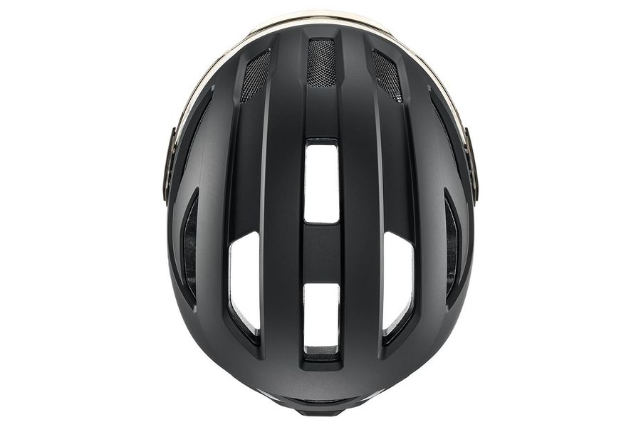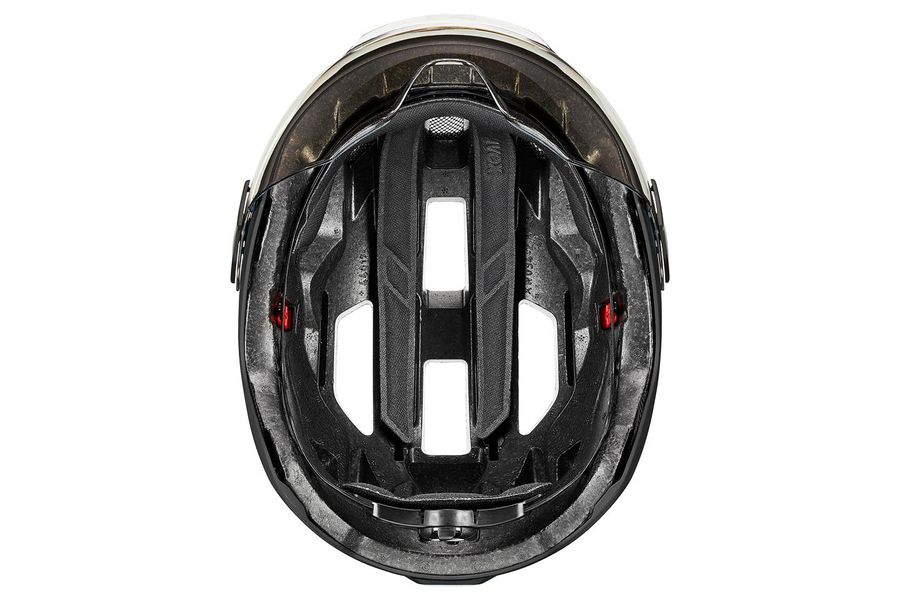 Sicher. Sichtbar. Praktisch. Besser als mit dem uvex stride visor lassen sich Kopf und Augen kaum schützen. Der Visierhelm für Commuter-Strecken und City-Touren ist weit mehr als nur eine trendige Ergänzung zu E-Bikes und Hipster-Rädern. Die Hardshell-Bauweise mit Kunststoff-Außenschale und leichtem EPS-Kern macht den Helm extrem schlagfest. Das leicht getönte, kratzfeste Visier bietet ein uneingeschränktes Sichtfeld – entscheidend für die Sicherheit im Großstadtverkehr. Der uvex stride visor lässt sich problemlos mit optischen Brillen kombinieren. Dank neuem Bajonettverschluss ist die Scheibe schnell gegen ein optional erhältliches dunkles oder klares Visier auszutauschen. Ebenfalls optional: das Rain Cap. Es verhindert, dass Nässe zwischen Visier und Helm eindringt. Gute Sichtbarkeit bei Nacht garantiert das an der Rückseite integrierte Plug-in LED-Licht. Weitere Highlights: Der uvex monomatic Komfortverschluss ist einhändig bedienbar. In der Schale lässt sich ein leichtes Hiplok Z LOK Schloss parken.