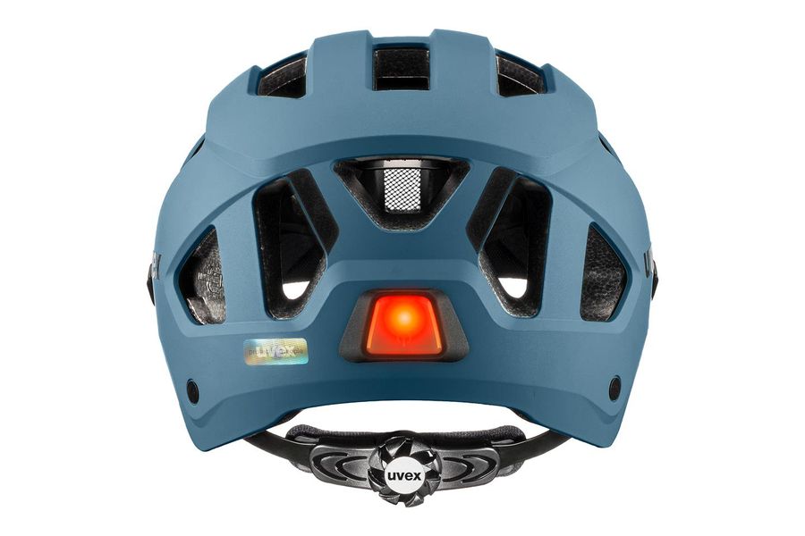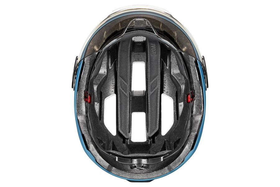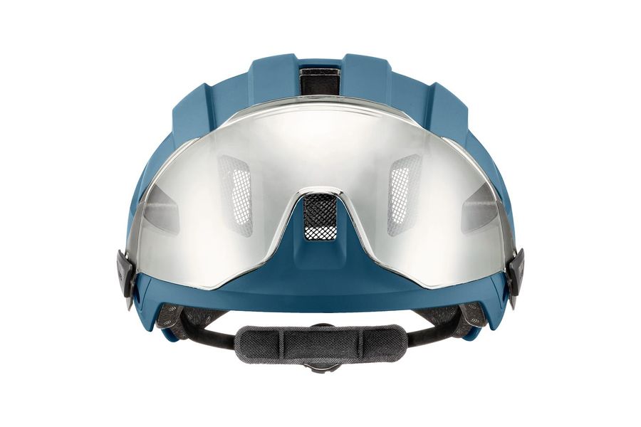 Sicher. Sichtbar. Praktisch. Besser als mit dem uvex stride visor lassen sich Kopf und Augen kaum schützen. Der Visierhelm für Commuter-Strecken und City-Touren ist weit mehr als nur eine trendige Ergänzung zu E-Bikes und Hipster-Rädern. Die Hardshell-Bauweise mit Kunststoff-Außenschale und leichtem EPS-Kern macht den Helm extrem schlagfest. Das leicht getönte, kratzfeste Visier bietet ein uneingeschränktes Sichtfeld – entscheidend für die Sicherheit im Großstadtverkehr. Der uvex stride visor lässt sich problemlos mit optischen Brillen kombinieren. Dank neuem Bajonettverschluss ist die Scheibe schnell gegen ein optional erhältliches dunkles oder klares Visier auszutauschen. Ebenfalls optional: das Rain Cap. Es verhindert, dass Nässe zwischen Visier und Helm eindringt. Gute Sichtbarkeit bei Nacht garantiert das an der Rückseite integrierte Plug-in LED-Licht. Weitere Highlights: Der uvex monomatic Komfortverschluss ist einhändig bedienbar. In der Schale lässt sich ein leichtes Hiplok Z LOK Schloss parken.
