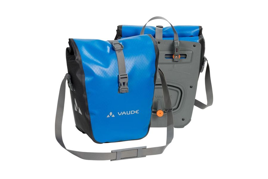 Auf in die große, weite Welt! Die wasserdichten Vorderradtaschen werden aus robustem, PVC-freiem Planenmaterial klimaneutral am deutschen VAUDE-Standort in der Nähe des Bodensees hergestellt und würden gerne mit Dir auf große Reisen gehen. Sie lassen sich durch den Wickelverschluss auf individuelle Größen bringen und absolut dicht verschließen. Für Übersichtlichkeit sorgt eine extra Innentasche. Die Taschen werden mit dem QMR 2.0-System und stabiler Rückenplatte rechts und links am Gepäckträger befestigt, sind über einfach bedienbare Handrädchen justierbar und lassen sich schnell und einfach abnehmen. Diese Vorderradtaschen können genauso gut als Hinterradtaschen verwendet werden. Mit einem Fahrradschloss können sie direkt am QMR-Haken verriegelt werden. Mit Reflexelementen. Lieferumfang: zwei Taschen (Paar). Das Gesamtvolumen beider Taschen beträgt 28 Liter. Kann durch diese praktische Zubehör-Taschen ergänzt werden: Toolbag Front, Addita Bag.