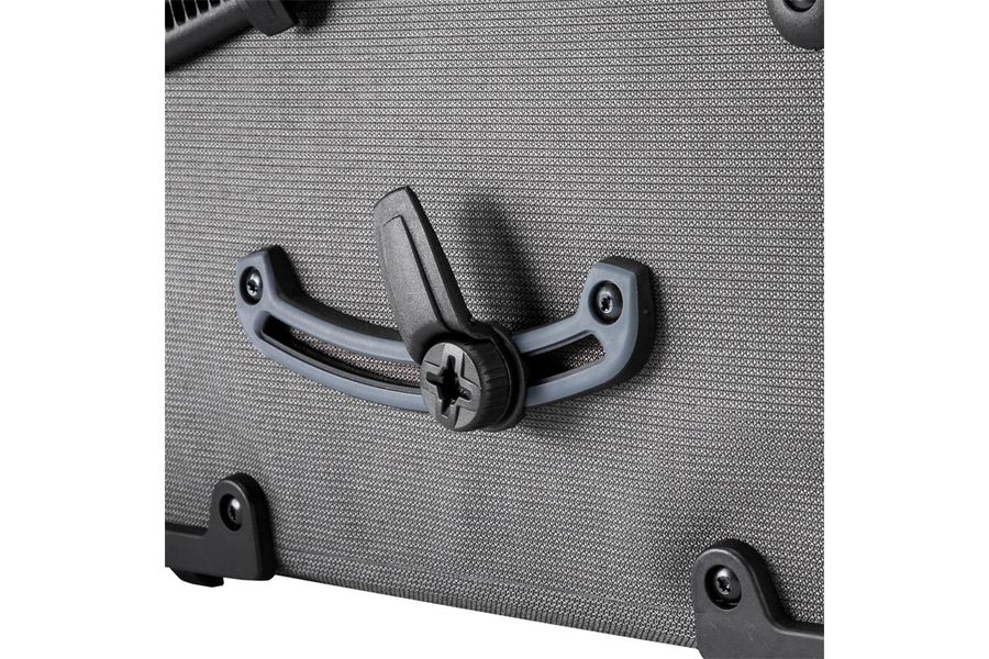 - When used on the right side of the pannier rack: Loosen the outer screws of the rail, remove the blind plug on the back of the bag, swivel the rail and tighten the screws again, insert the blind plug into the holes that are no longer used and screw tight
