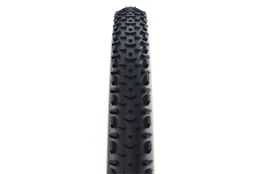The race cyclocross tire. The X-One R is Schwalbe's fastest cyclocross tyre - with a new, versatile tread design for maximum performance on changing surfaces. Its Super Race carcass ensures smooth riding characteristics, low rolling resistance and high cornering grip. V-Guard offers additional puncture protection.