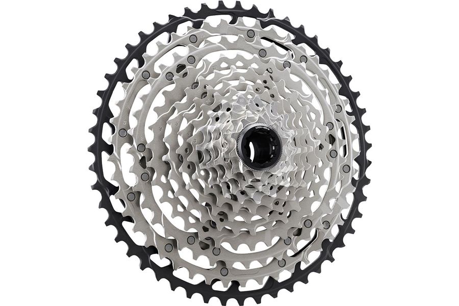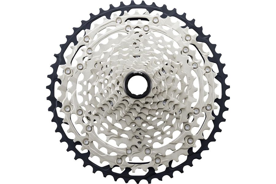 The Shimano M7100 cassette is ideal for 1x mountain bike drivetrains, but can also be combined with 2x drivetrains. With gear ratios adapted to the rider, it offers optimal cadence control on a wide range of MTB terrains. With BEAM SPIDER construction, the new Shimano Deore M7100 12-speed cassette saves weight while increasing SHIMANO's MTB gear range by another gear. With SHIMANO's new MICRO SPLINE freehub body and HYPERGLIDE+ tooth profile, the 10-51T cassette delivers advanced shifting performance. The sprockets with teeth 11-45 are made of steel, while the largest sprocket with 51 teeth, which is usually under the lowest load, is made of aluminium. The biggest advantage of this is the weight saving. The cassette therefore weighs only 534g in the 11-51t configuration. Another feature of Shimano and their high-gear cassettes is that the 5 lower sprockets can be dismantled. This means that individually worn sprockets can be replaced without having to buy a new cassette. This saves the environment and resources.