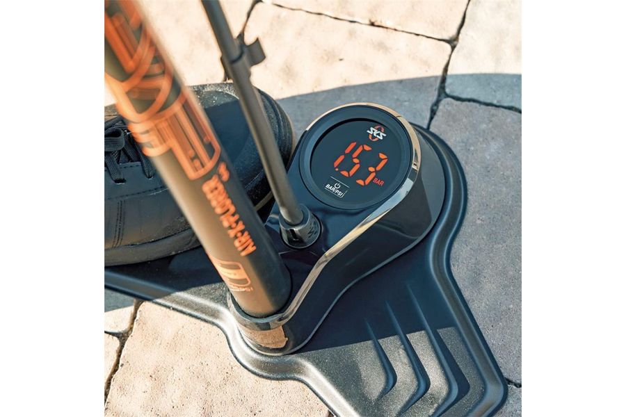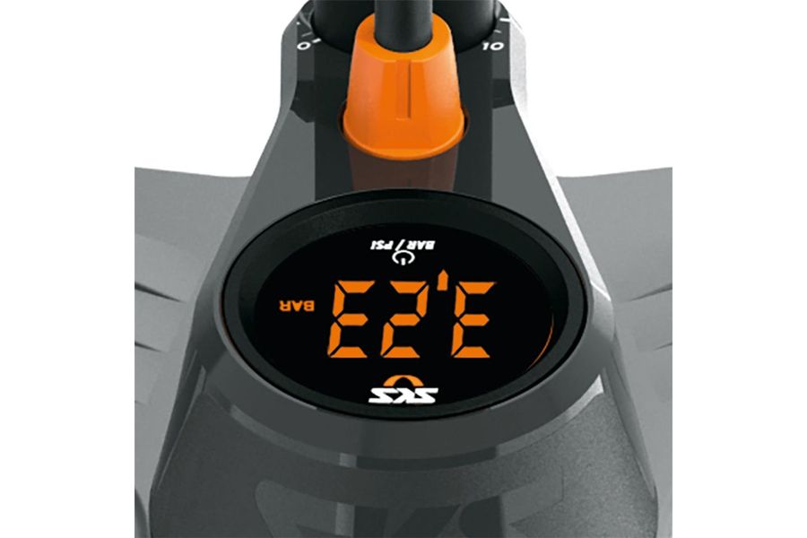 An air pump from SKS with digital pressure gauge up to 10 bar / 144 PSI.