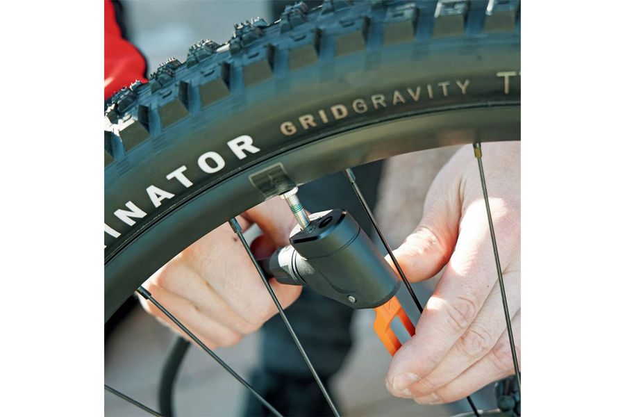 The large steel tube and the solid metal base guarantee good power transmission, so that higher pressures (476 cm³ stroke) can be pumped into the tire effortlessly.