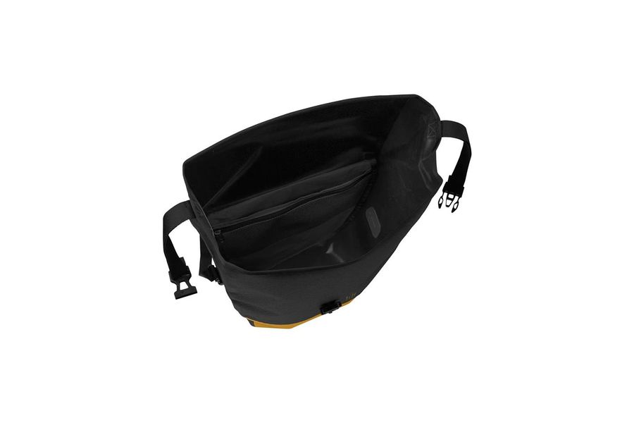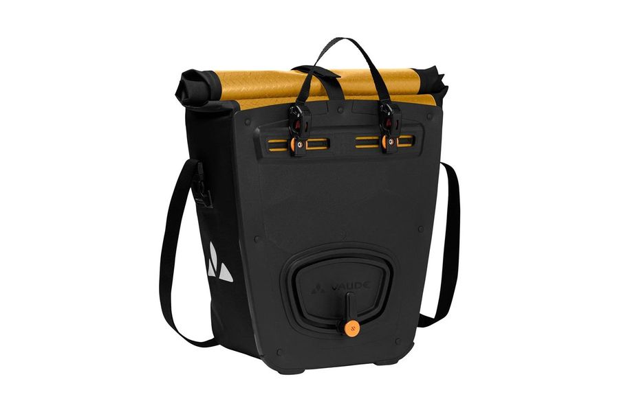 It can be adjusted to just the size you want with its roll closure and is absolutely watertight. An interior organizer pocket with zip provides secure storage for small items or documents. The single rear pannier is outfitted with a sturdy back panel and can be securely attached on the right or left on your gear rack with the QMR 2.0 hook system. The hooks can be easily adjusted with user-friendly dials and can be locked directly to the QMR hook using a U-lock.