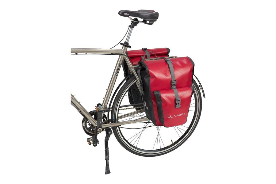 Get out and explore that world around you! The waterproof rear panniers are climate neutrally manufactured at the German VAUDE company headquarters near Lake Constance with durable, PVC-free tarpaulin material for all world travel adventures.