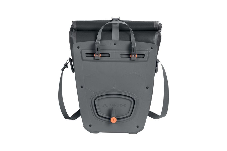 Get out and explore that world around you! The waterproof rear panniers are climate neutrally manufactured at the German VAUDE company headquarters near Lake Constance with durable, PVC-free tarpaulin material for all world travel adventures. With a roll closure that allows you to customize the size of the bag and seal it so that it's water tight. An extra inside pocket and outer welded pocket makes it easy to store things separately. The bags are securely attached to the right and left sides of the back gear rack with the QMR 2.0 system, which also allows for easy adjustment and quick on-and-off. With a bike lock, they can be directly locked onto the QMR hook. With reflective elements. Included: two bags (pair). Can be used together with the practical accessory bags: Toolbag Back, Sortyour Back, Addita Bag.