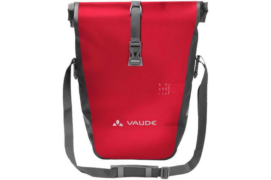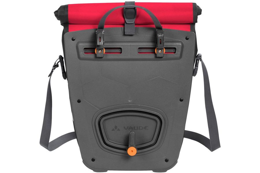 Get out and explore that world around you! The waterproof rear panniers are climate neutrally manufactured at the German VAUDE company headquarters near Lake Constance with durable, PVC-free tarpaulin material for all world travel adventures. With a roll closure that allows you to customize the size of the bag and seal it so that it's water tight. An extra inside pocket makes it easy to store things separately. The bags are securely attached to the right and left sides of the rear gear rack with the QMR 2.0 system, which also allows for easy adjustment and quick on-and-off. With a bike lock, they can be directly locked onto the QMR hook. With reflective elements. Included: two bags (pair). Can be used together with the practical accessory bags: Toolbag Back, Sortyour Back, Addita Bag.
